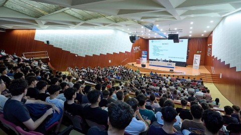 L’acte del 10 de setembre va donar la benvinguda a més de 450 estudiants dels graus en Enginyeria Informàtica (GEI) i Intel·ligència Artificial (GIA). La sessió va ser presidida per la Vicedegana de Fase Inicial i Programes d’Acció Tutorial, Gemma Sesé; la Vicedegana d’Estudis de Grau i Cap d’Estudis del GEI, Lídia Montero; el Cap d’Estudis del GIA, Ramon Sangüesa; i els va acompanyar el Vicerector d’Estratègia Digital, Agustín Fernández.