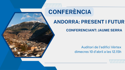 Conferència 'Andorra: Present i Futur' organitzada dins de l'ambit de l'assignatura 'Empresa i Entorn Econòmic' del Grau en Enginyeria Informàtica, a càrrec de Jaume Serra, important empresari i polític andorrà, qui reflexionarà en com afrontar els reptes de futur per l'economia andorrana.