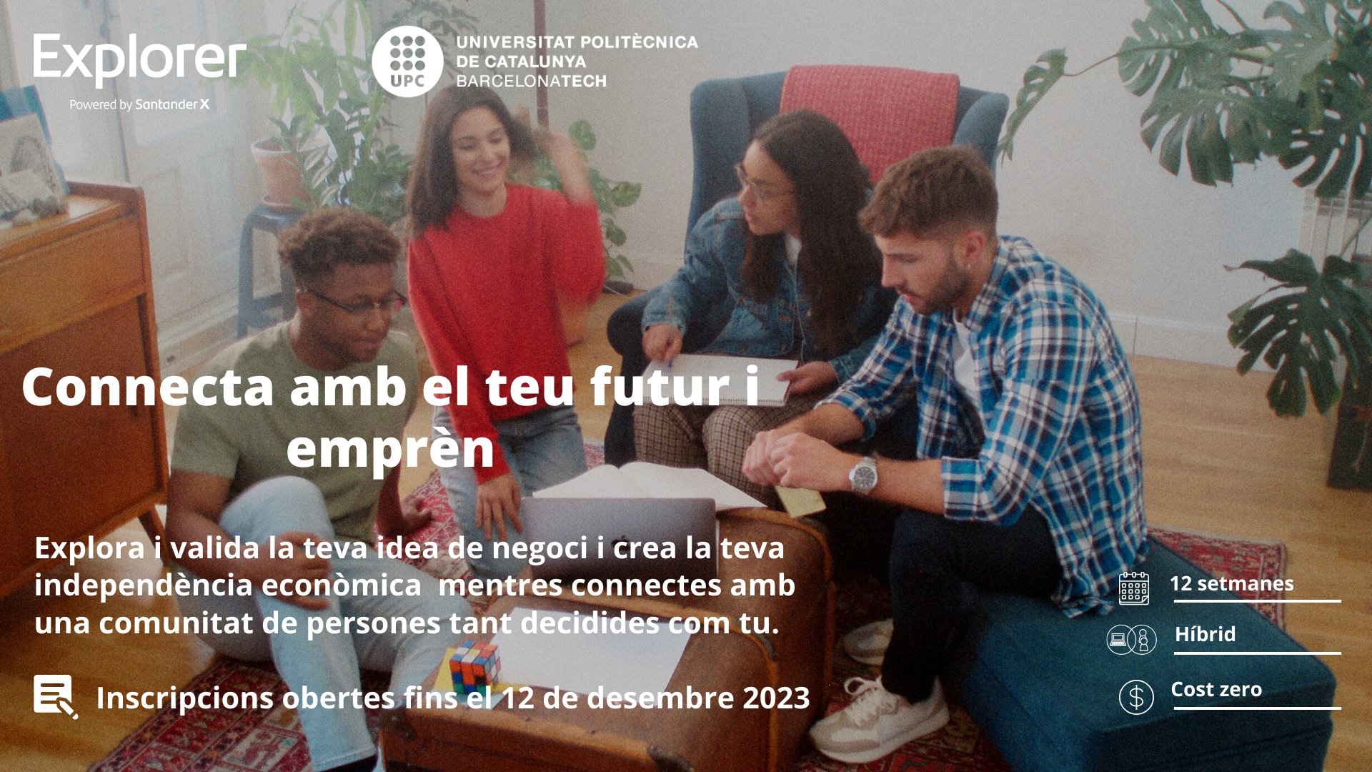 Aquest programa, orientat a estudiants universitaris, en coordinació amb Emprèn UPC ofereix formació en línia (o semipresencial) del 29 de gener fins al 28 d'abril amb 8-10 hores setmanals.