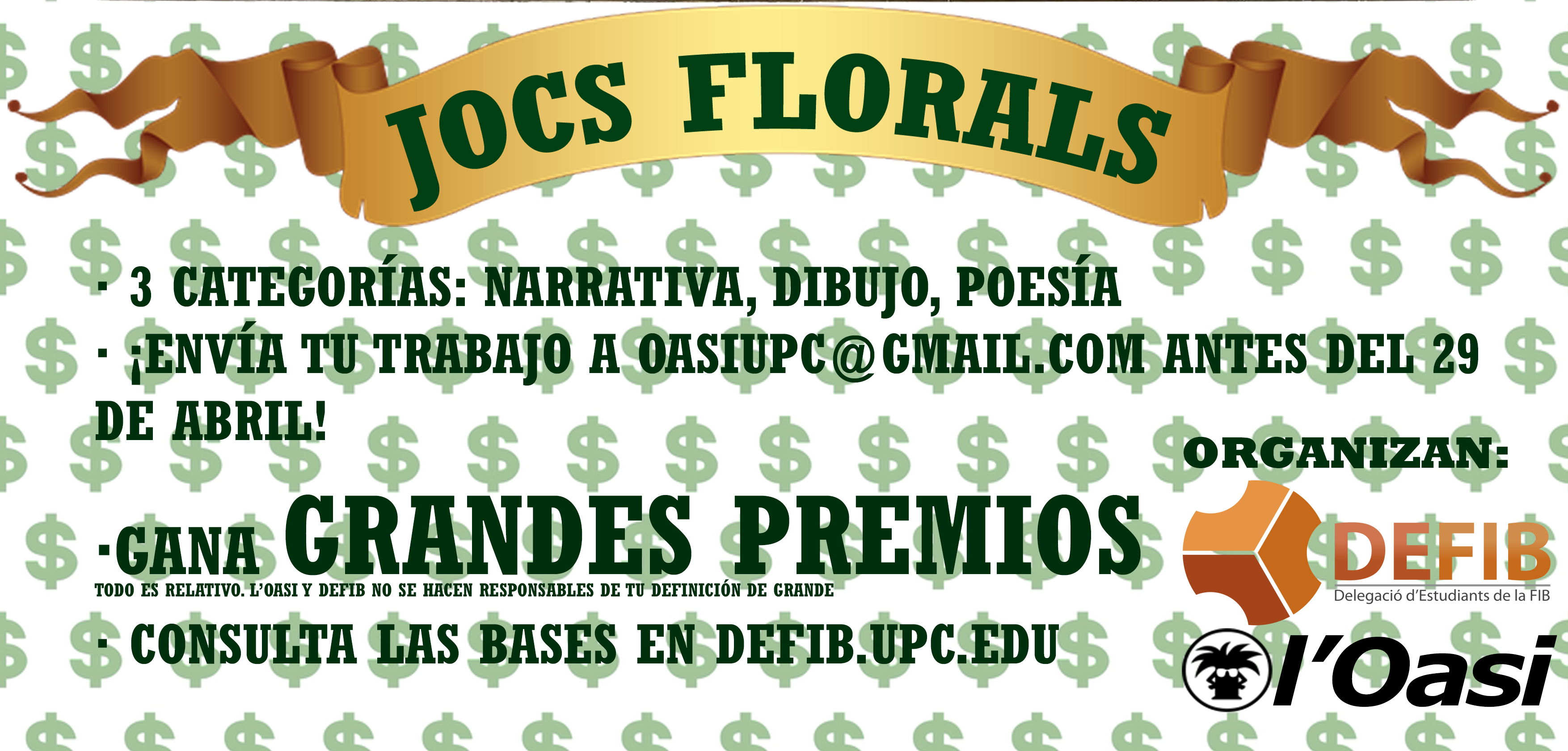 La DEFIB i l'Oasi convoquen la primera edició dels Jocs Florals. La participació és oberta a estudiants, PDI i PAS de la FIB.