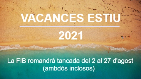Amb motiu de les vacances d'estiu, els serveis administratius de la FIB romandran tancats del 2 al 27 d'agost (ambdós inclosos).
