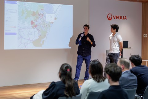 Pau Escobar and Pablo Chacón, students in the Bachelor’s Degree in Artificial Intelligence at FIB, were finalists of the AB Data Challenge, AGBAR’s data innovation competition, presenting their project AquaEquity to the jury on January 28 at the Ciutat de l'Aigua.