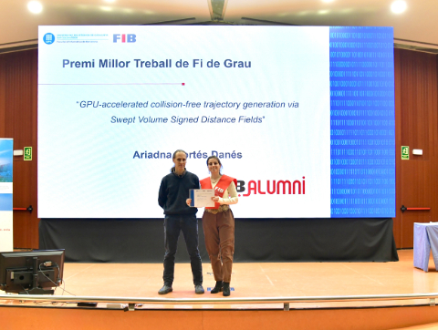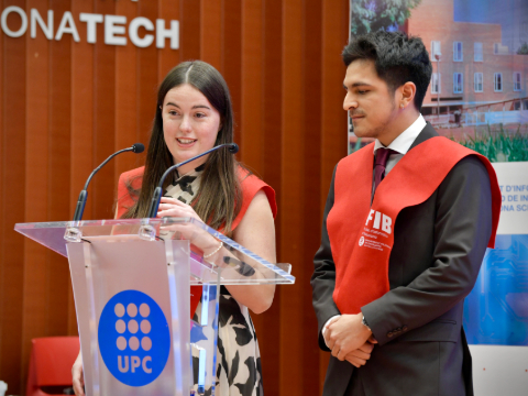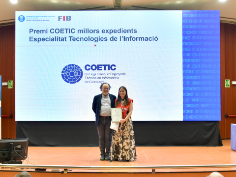 During the event, the COETIC Award in the category of Specialisation in Information Technologies was presented by Mr. Javier Martí, Dean of COETIC, as well as the FIB Alumni Award for the Best Bachelor’s Thesis, presented by Mr. Pau Fonseca, member of the FIB Alumni Board, in recognition of the students’ effort and excellence.