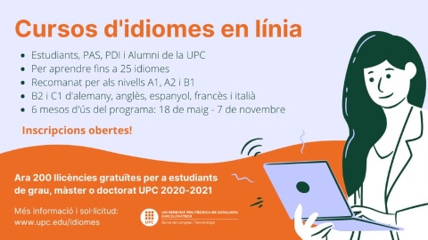 Abiertas hasta el 9 de mayo las inscripciones para los cursos de idiomas en línea que ofrece el Servicio de Lenguas y Terminología. El programa de idiomas tiene una duración de seis meses, del 18 de mayo al 7 de noviembre de 2021, y cuenta con 25 lenguas disponibles y varios niveles. La actividad también es válida para reconocer ECTS según el número de horas que consten en el certificado obtenido.