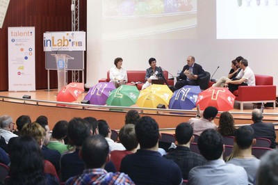 L’acte central de la jornada va fer un repàs a la història de l’InLab FIB mitjançant un vídeo i una taula rodona que van cloure Núria Castell, degana de la FIB; Josep Casanovas, director de l’inLab FIB i Xavier Bonany, membre de la junta directiva de FIB Alumni.