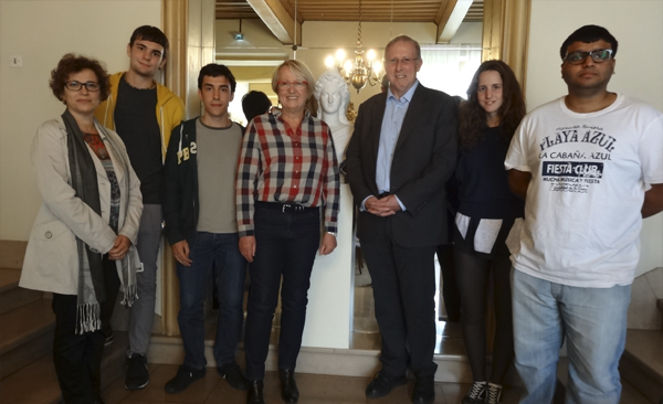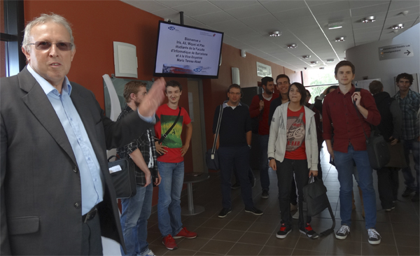 Gran rebuda i acceptació de la delegació de la FIB a l'École d'Ingénieurs ISIS. La delegació estava formada per Iris, Ali, Pau i Miquel (estudiants de la FIB) i M. Teresa Abad (vicedegana d'estudiantat).